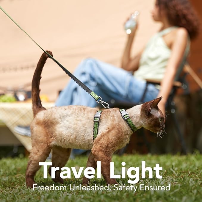 - Escape Proof Cat Harness: This cat harness wraps securely around the neck and chest preventing any chance of escape. The simple design takes the strain off your cat's neck and back, even them won't notice wearing it. Walk easily and say goodbye to escaped kittens
