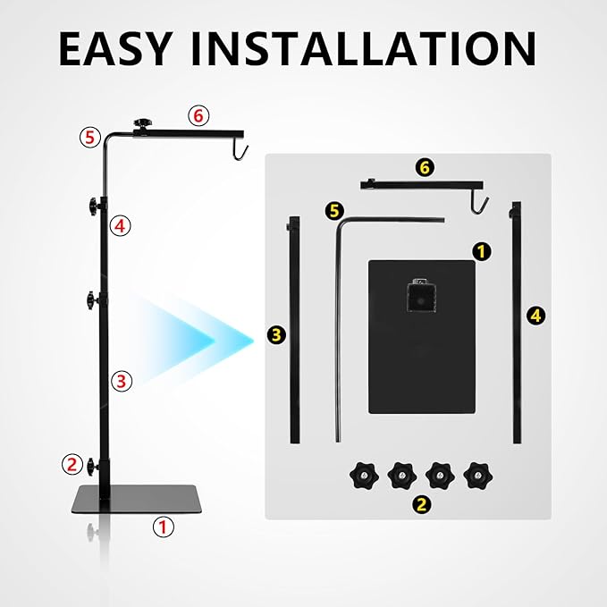 - Sturdy and Durable Design - Crafted from durable metal material, this light stand ensures stability while supporting reptile lamps. The lamp base measures 3.5 x 6 inches and features a widened and weighted design for enhanced stability. Ideal for long-term lighting needs, preventing slippage or tilting to ensure the safety of your reptile.