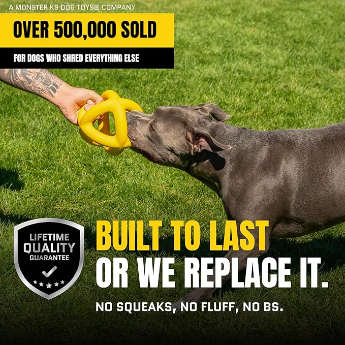 - Virtually Indestructible — Lifetime Replacement Guarantee: No dog toy is truly indestructible — but this is as close as it gets. If it’s not the longest lasting toy your dog has ever had, you get a one-time replacement or refund. No sqeaks, no fluff, no BS.