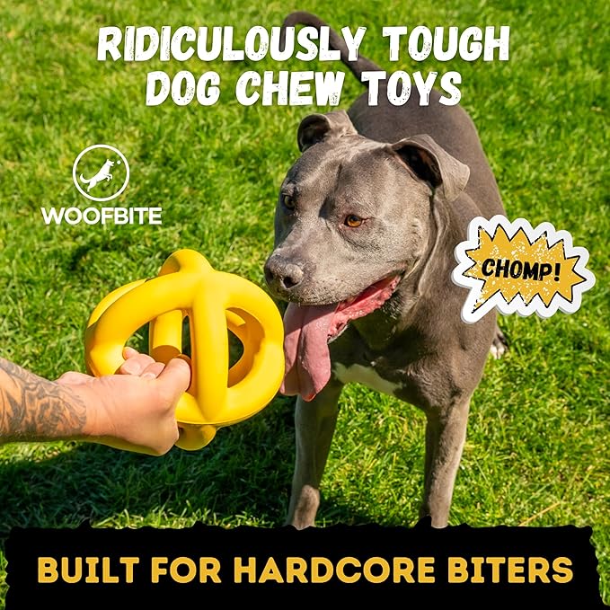 - Unbreakable Design for Power Chewers: Forged from a proprietary heavy-duty, industrial-strength rubber, WoofBite toys withstand the relentless chewing and playing of even the most powerful dogs. Ideal for large breeds and extreme chewers, our proprietary rubber is lab-tested for maximum durability, existing at the peak of what is physically possible in rubber manufacturing.