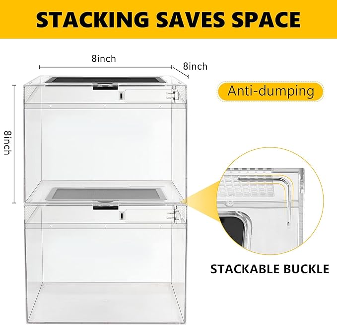 - Never Broken: Crafted from high quality PC materials that are shatterproof, scratch resistant, and won’t yellow, this reptile enclosure features secure door locks to prevent escape, making it ideal for leopard geckos, jumping spiders, and so on
