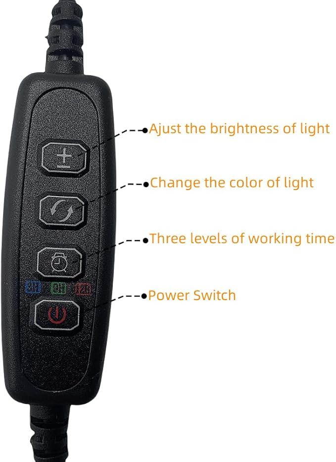- ๐ Three colors to choose: The circle button is the switch to change light colors from any one of white, yellow and yellow-white. And the add & subtract button is the switch to adjust the brightness of light.