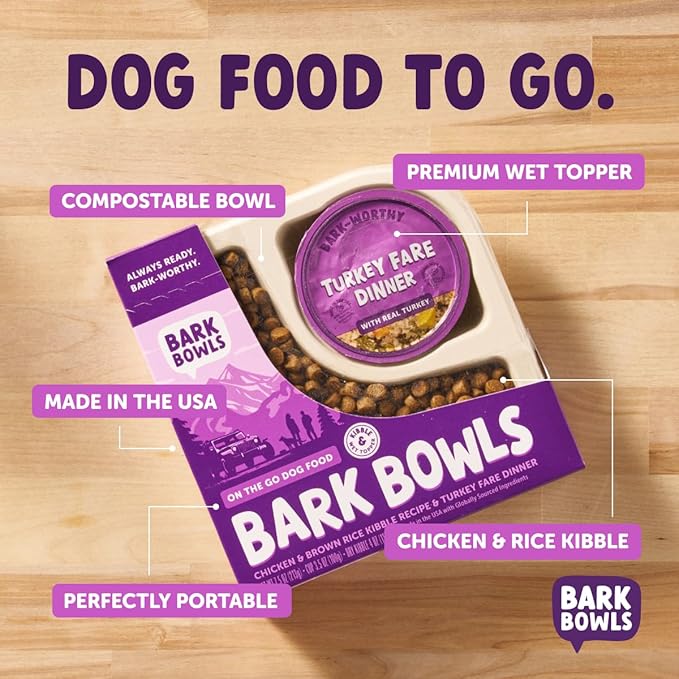 - Eco-Friendly Packaging: At Bark Bowls, we're committed to reducing our paw print on the planet. Our On-the-Go Meal Solution comes in a recycled and fully compostable bowl, ensuring that every part of Bark Bowls is as environmentally friendly as possible.