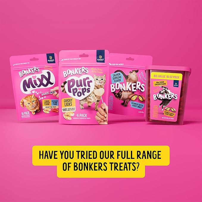 BONKERS Mixx, Wet Lickable Tube Tender Chicken Flavor Cat Treats, Real Meat Treats, Treats for Training or Food Topper, for All Breeds and Ages, Value Pack (15 Pack, 60 Tubes)