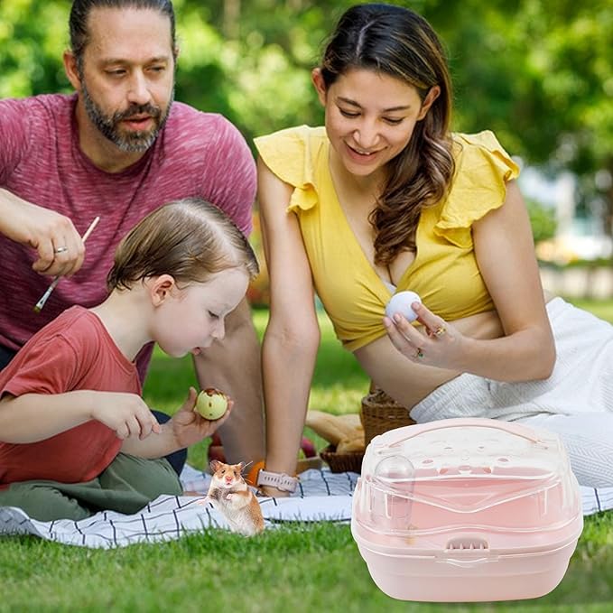 - Safety Lock: Portable mouse cage is equipped with a safety lock to prevent hamsters from escaping.The 360 ° transparent window allows you to easily observe your pet's activities and interact with them