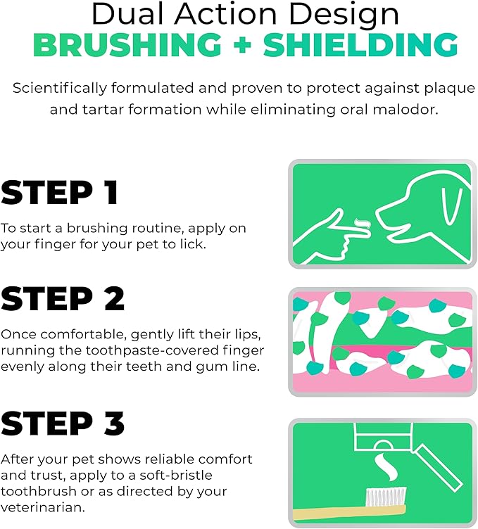 Tartar Shield Pro Care – Natural Enzymatic Pet Toothpaste Kit – Protects Against Plaque & Tartar - Freshens Breath & Removes Stains – Cleans Teeth and Gums – for Dogs & Cats - Coconut Flavor, 3 Oz.