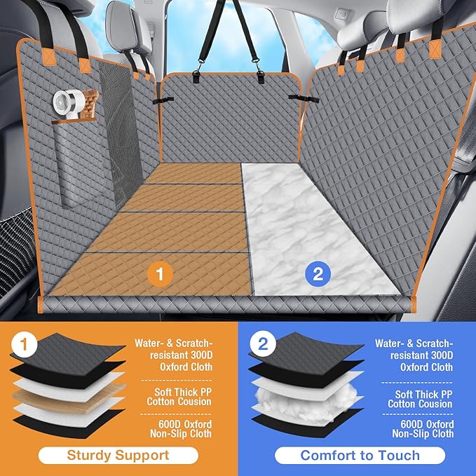 - 【No More Pets Falling】The back seat cover for dog features sturdy bottom board, which is strong enough to support your dog with dog safety seat belt to prevent your pet from sliding during drive.