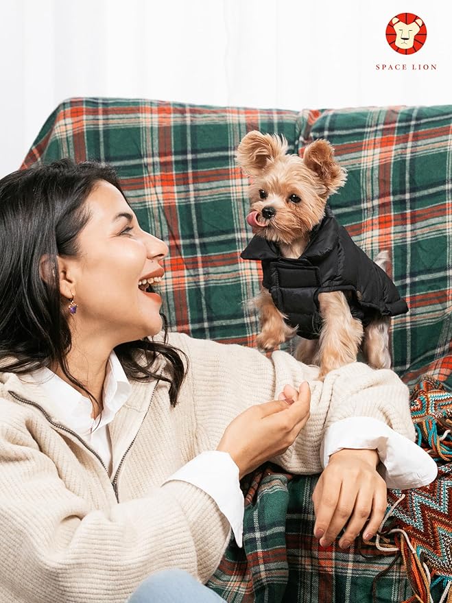 SPACE LION Puffer Jacket, Down Winter Coat, Durable Outdoor Coat for Cold and Windy Conditions, Waterproof, Windproof, Lightweight Jacket, Adjustable Fit for Small Dog(Black,S)