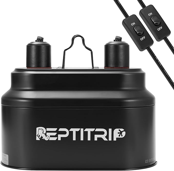 Dual Reptile Light Fixture with Switches, Reptile Heat Lamp Fixture, Reptiles Terrarium UVB Bulb Fixture for Bearded Dragon, Max 160W Each (Bulb Not Included)