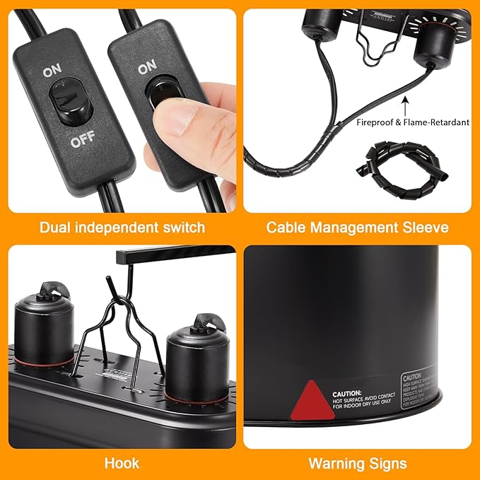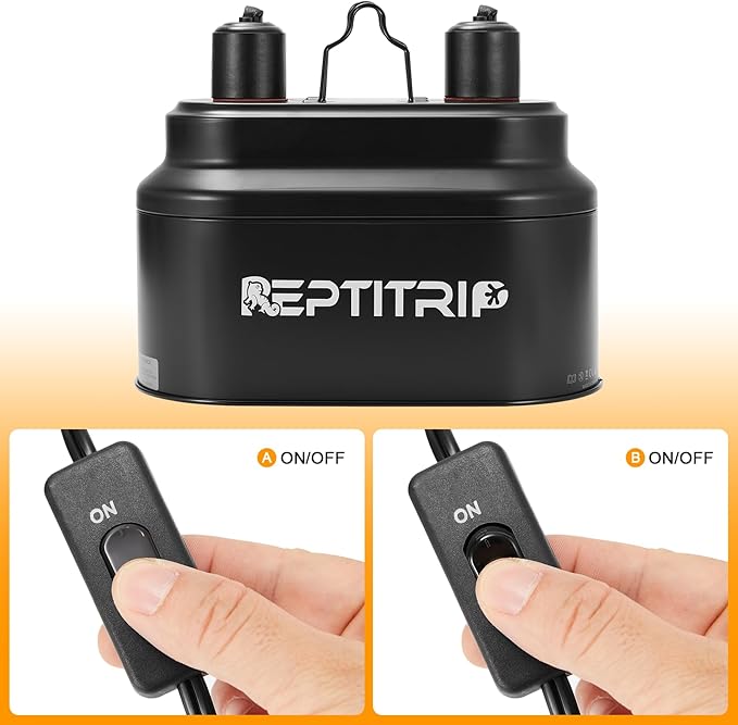 - Independent Switches: The power cord of the bearded dragon light fixture is equipped with two independent switches, allowing you to control the heat lamp and UVB lamp as needed, providing a comfortable temperature and lighting environment for reptiles