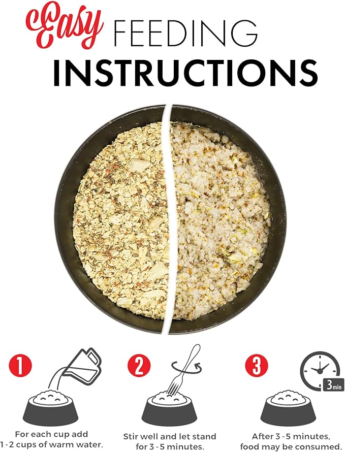 - Serve as a complete meal, tasty topper, mix-in, or with lick mats and interactive toys - just add water to create this protein-packed, wholesome recipe.