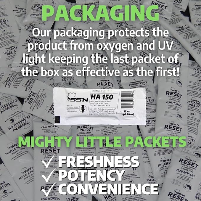 SSN HA 150 - 4 In 1 Horse Supplement - 30 Servings - Equine Joint, Gastric, Ligament/Tendon, Lung Capillary Health - Glucosamine Alternative - (30 Pack, 150mg Sodium Hyaluronate per Serving)