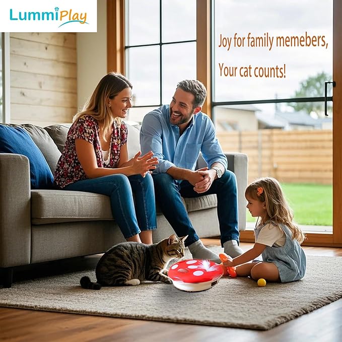 Interactive Cat Toy Automatic Mushroom - Whack-a-Mole Game with Rotating Feathers for Indoor Cats, Hide & Seek Rechargeable Toys Boredom Relief Adult Kittens, Safe Chew Proof Design (Red)