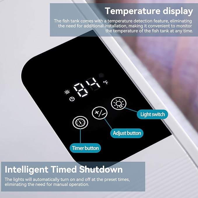 - 【Intelligent Timed Shutdown】This fish tank is equipped with a smart control panel, allowing users to set timing functions according to their needs. The lights will automatically turn on and off at the preset times, eliminating the need for manual operation. This feature is especially convenient for beginners and those looking for a starter fish tank kit, ensuring efficient and hassle-free operation.