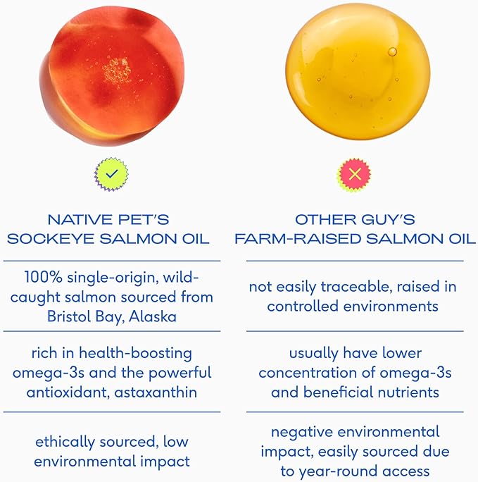 - VITAL FOR BRAIN HEALTH & COGNITIVE FUNCTION: Featuring DHA omega-3s, Native Pet salmon oil for dogs and cats supports brain development in young pets and helps maintain cognitive function in aging pets. Ideal as a cat salmon oil or wild salmon oil for dogs seeking mental sharpness.