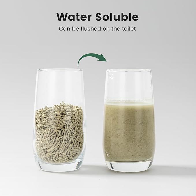 - Water Soluble and Flushable -- This tofu cat litter is designed to be flushable, making it simple and quick to dispose of while saving you time and effort during cleanup.