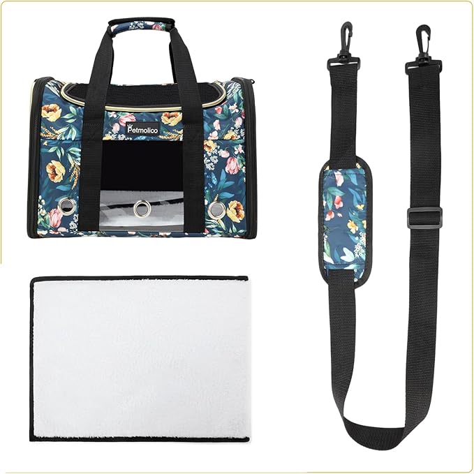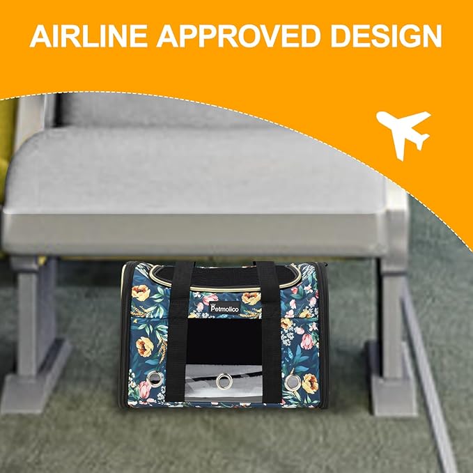 Petmolico Cat Carrier Soft-Sided Pet Bag for Small Medium Cats Puppies 16LBs - Airline Approved Pet Travel Carrier 3 Open Doors (Medium,Green Peony)