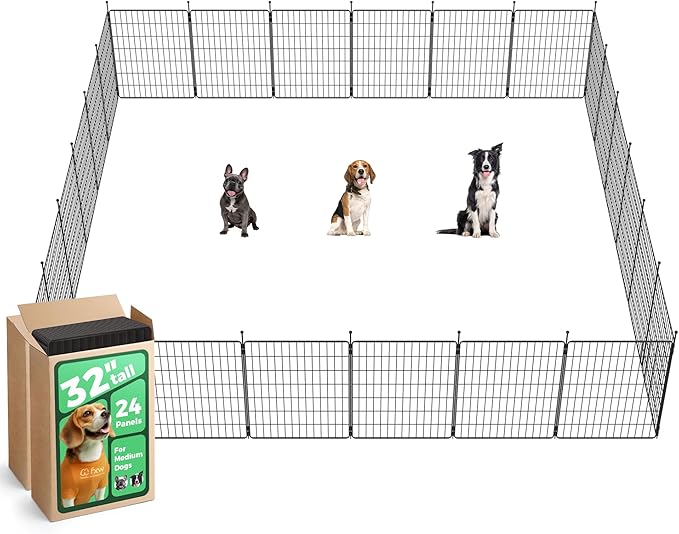 FXW MiniPaws Unleashed Dog Playpen for Yard & RV Camping, Expandable 32-inch 24 Panels for Small and Medium Dogs, Portable for Indoor and Outdoor Use