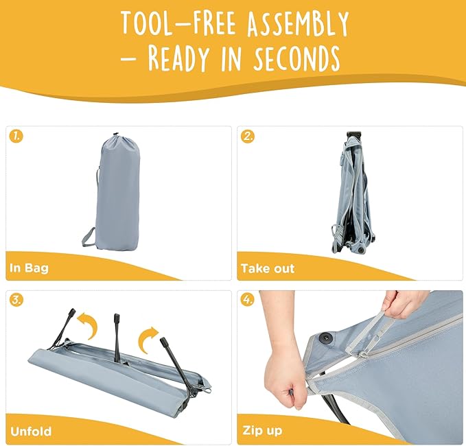 - COMPACT & FOLDABLE: This foldable dog bed features a 24.5"x7.5" folded size perfect for traveling & camping; zip it up in 15 seconds for a comfortable outdoor dog bed for your furry friend.