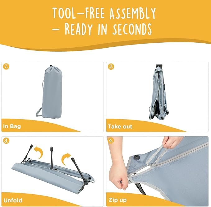 - COMPACT & FOLDABLE: This foldable dog bed features a 22"x8" folded size perfect for traveling & camping; zip it up in 15 seconds for a comfortable outdoor dog bed for your furry friend.