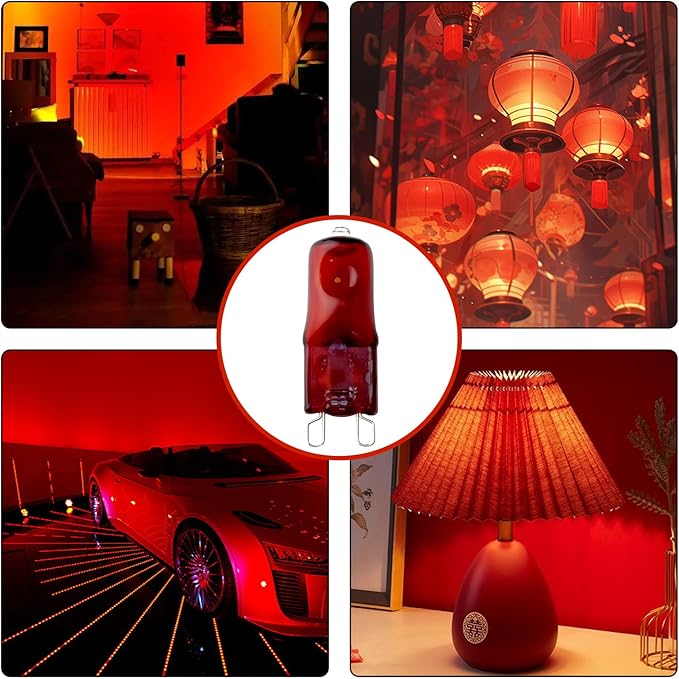 G9 Red Heat Lamp Bulbs for Reptiles 25W 4Pack,Mini Night Halogen Light Bulbs,Dimmable Infrared Heat Light for Tortoise,Turtle,Gecko,Bearded Dragon,Lizard Tank