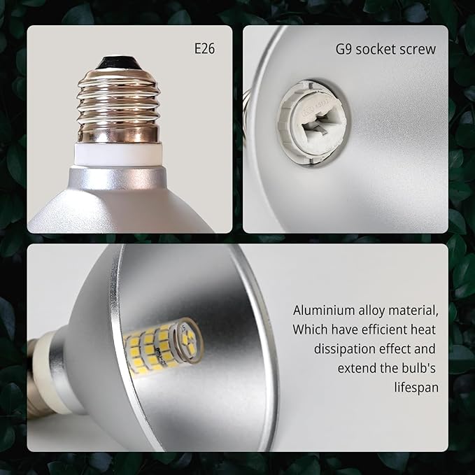 - 【Used for G9 Bulbs】:This heat lamp bulbs for reptile can use less than or equal to 50W bulbs. G9 lamp sockets,E26 lamp holder,120v output. Do not touch the surface of the lampshade while in use.