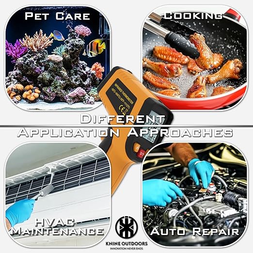 - Distance to Spot Ratio: Features a 12:1 distance-to-spot ratio, allowing you to measure temperature from a safe distance without direct contact, ideal for hard-to-reach places