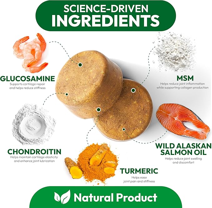 - Premium and Natural Ingredients Formulated by Veterinarians: Our vet-developed formula features natural, high-quality ingredients without artificial additives, providing dog hip and joint support.