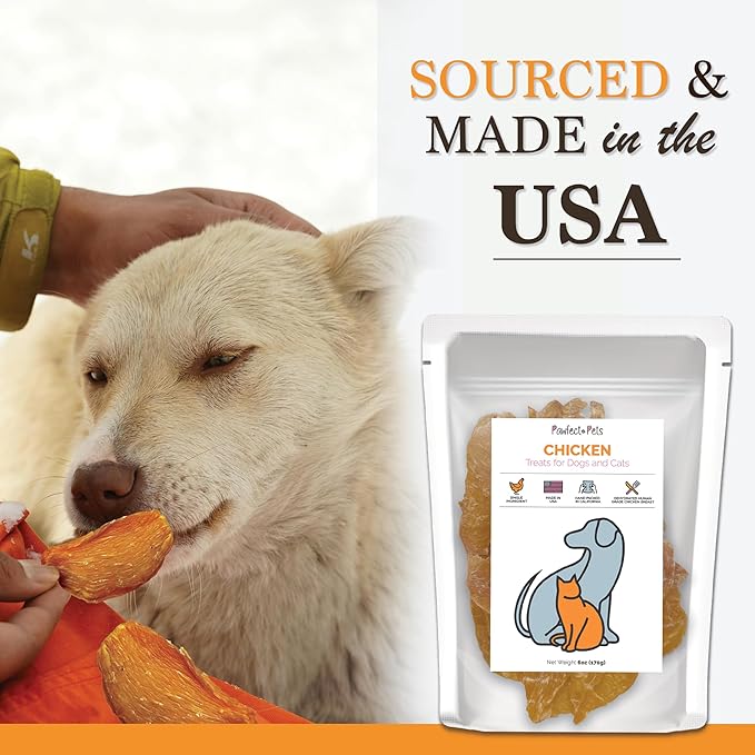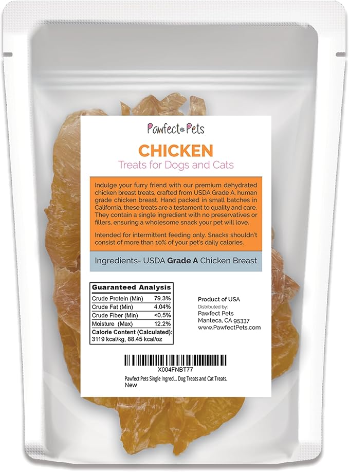 Pawfect Pets Single Ingredient Dehydrated Chicken Breast Treats for Dogs and Cats, 6oz Bag. USA Made