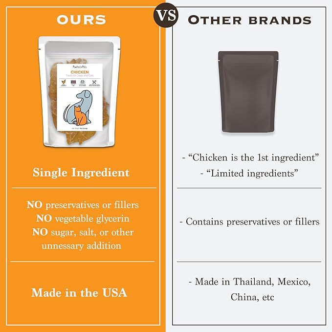 - Single Ingredient- Human Grade USDA Grade A Chicken Breast- Support your dog's growth and development with these high quality dog chicken jerky treats.