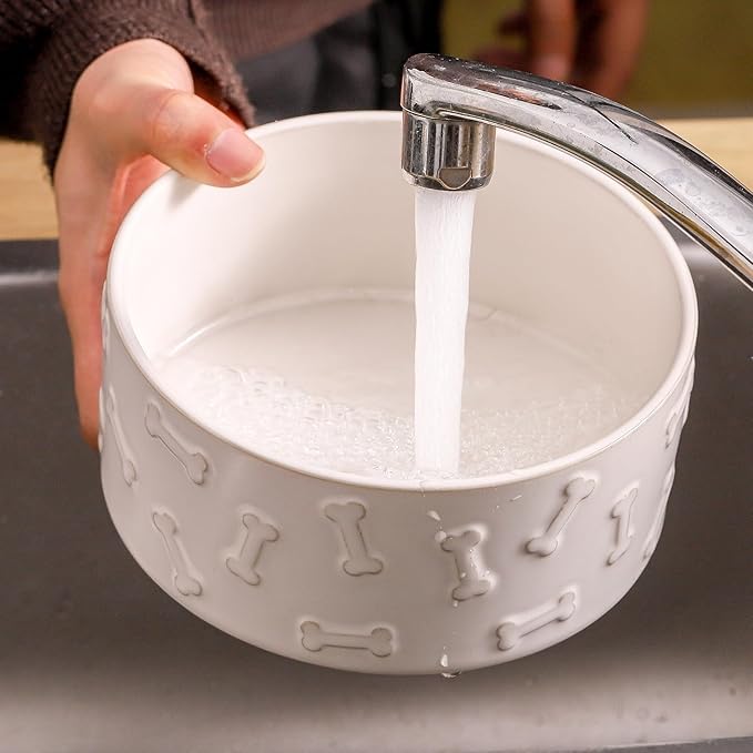 - Modern Design with Bone Pattern: Suitable height made it easier to feed your pet food and water, 6.1 inch ceramic dog food bowl is big enough for small and medium-sized dogs, large cat, rabbit.