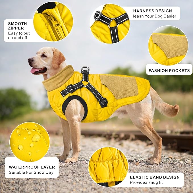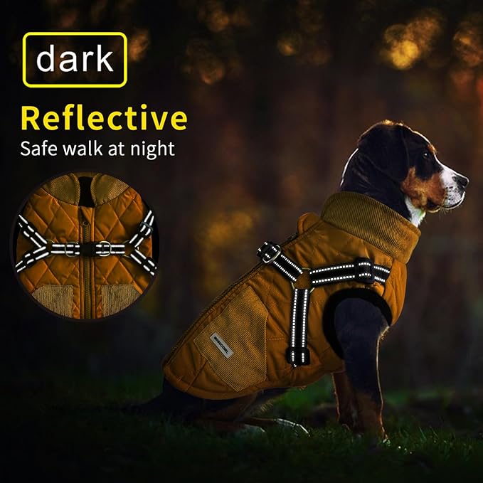- WEATHERPROOF MATERIAL :Our dog jacket is made of windproof and waterproof polyester to protect your furry friend from bad weather. The double-layer fleece lining guarantees maximum warmth for indoor and outdoor activities
