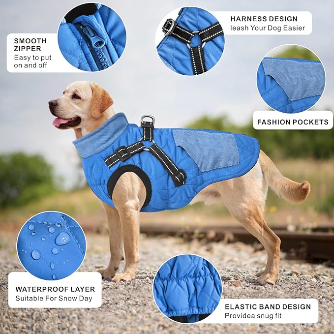 - WEATHERPROOF MATERIAL :Our dog jacket is made of windproof and waterproof polyester to protect your furry friend from bad weather. The double-layer fleece lining guarantees maximum warmth for indoor and outdoor activities