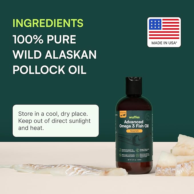 Wuffes Advanced Omega 3 Fish Oil for Dogs, Natural EPA & DHA Fatty Acids, Supports Healthy Skin and Coat, Joint Nutrition, Digestion & Immune System - 100% Pure Wild Alaskan Fish Oil, 16 Oz