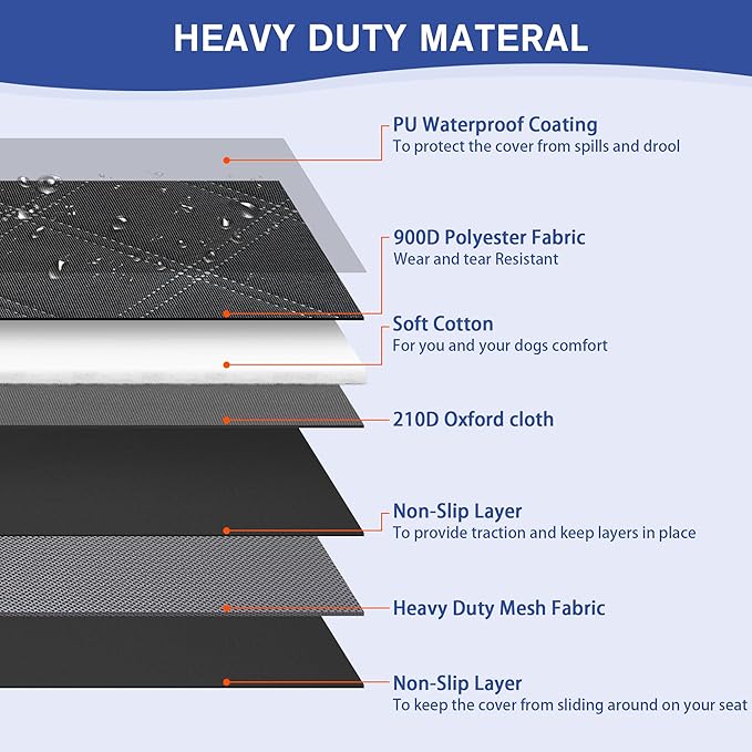 - MULTI-LAYER PROTECTION: The rugged 900D Oxford top—odorless and chemical-free—resists muddy paws and spills with ease. Thanks to its no-sew bonded design, there are no leaks. Plush padding keeps everyone cozy, and the anti-slip base and seat anchors hold firm—even with active dogs or fidgety kids!