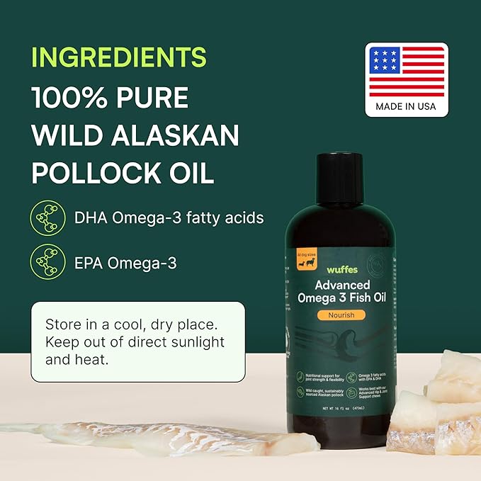 Wuffes Advanced Omega 3 Fish Oil for Dogs, Natural EPA & DHA Fatty Acids, Supports Healthy Skin and Coat, Joint Nutrition, Digestion & Immune System - 100% Pure Wild Alaskan Fish Oil - 8 Oz
