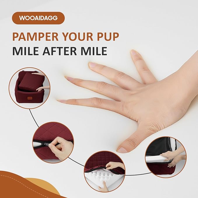 - Fashionable:The Wooaidagg dog car seat features a sleek design that enhances its beauty,Filled with comfortable memory foam and wrapped in super-soft fabric,it helps ease pets' anxiety during long journeys