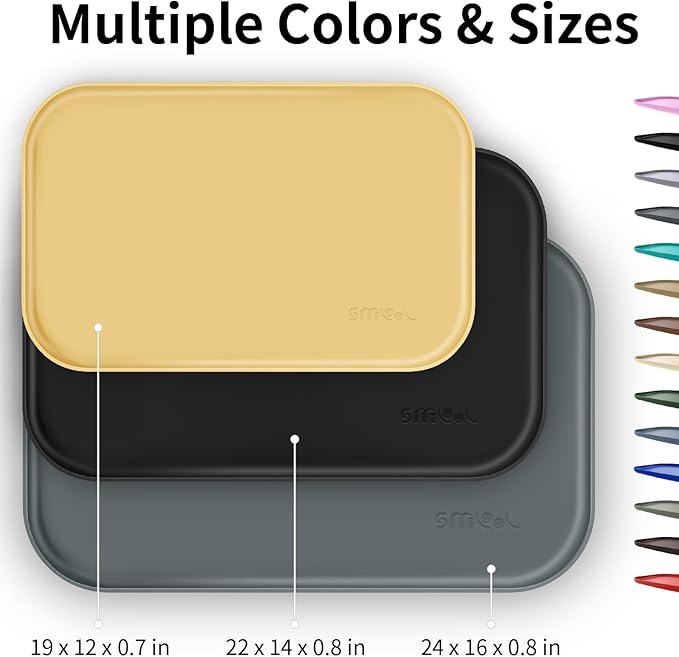 - Reinforced Raised Edges - The edges of the bpa free rimmed silicon dog dish trays for floor are 3 mm thick and have a 0.7 inch high raised lips, thicker and higher than similar products. This better contains food and water inside the mat, preventing messy spills during meals that can dirty your floors or lead to your pet eating contaminated food off the ground, risking their health. Not the same as absorbent pet feeding matts.