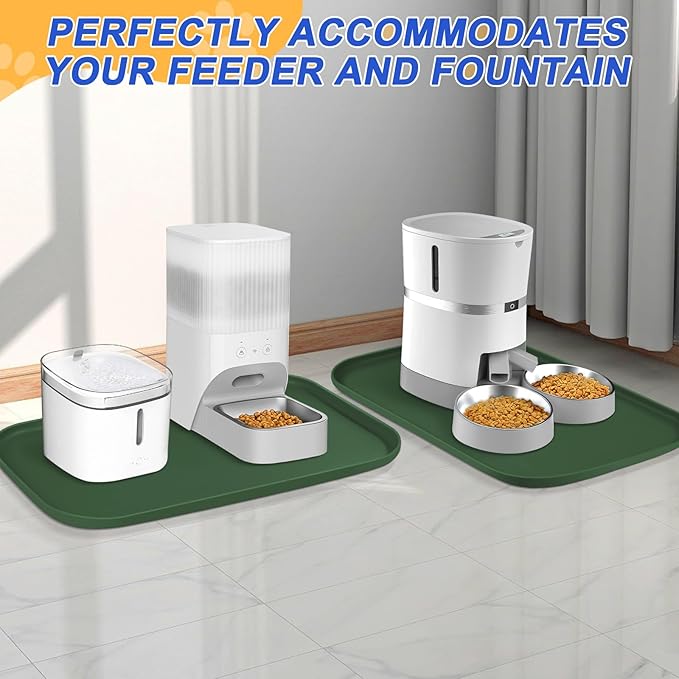 - Widely Used - The anti slip dog food spill mat with high sides can also be used under pet water fountain, automatic feeder, and litter boxes to help contain messes and protect floors. Use as boot mat, shoe matt tray for entryway, pet water splash mat, dog water bowl drip pan. Can also be used for dog crate, trash can, pet water dispenser, countertop, plant, fish tank.