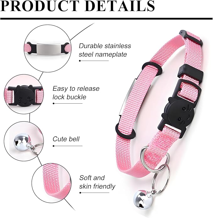 - 【Durable and reliable】 Made from high-quality nylon material, our personalized kitten cat collar is built to last. It is designed to withstand daily wear and tear, ensuring long-lasting durability. The safe breakaway quick-release buckle adds an extra layer of security, allowing your pet to free themselves if the collar ever gets caught on something. Trust in the quality of our collar to keep your feline friend safe and stylish at all times.