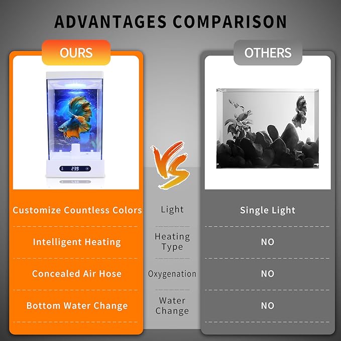 - 【Effortless Maintenance】: The Smart fish tank requires no installation. Simply unpack, add water, and it's ready to use. Easily replace water from bottom. A feeding hole at the top which can feed fish without opening the lid of the fish tank. Each aspect is designed for effortless operation, ensuring a seamless experience for all.