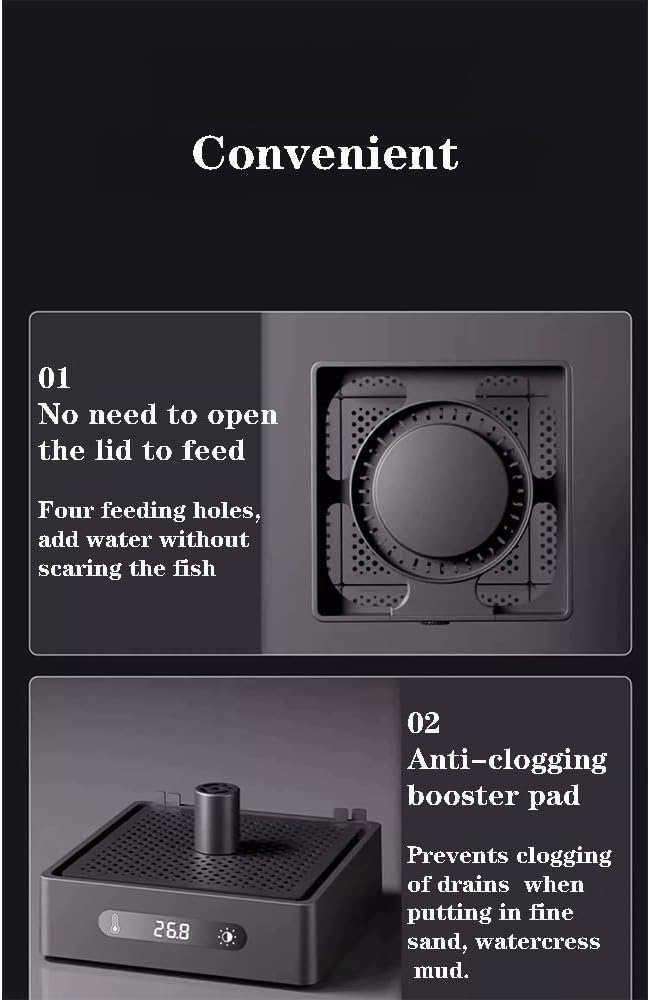 - 【Effortless Maintenance】: The Smart fish tank requires no installation. Simply unpack, add water, and it's ready to use. Easily replace water from bottom. A feeding hole at the top which can feed fish without opening the lid of the fish tank. Each aspect is designed for effortless operation, ensuring a seamless experience for all.