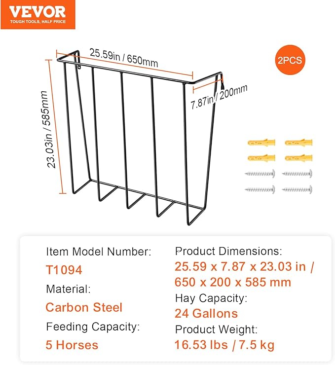 VEVOR Livestock Feeder, 24 Gallons Large Capacity, 2 Packs Heavy-Duty Steel Goat Hay Rack, 27'' Long Wall Mounted Horse Hay Holder, Multiple Sided Feeding Rack for Sheep Farm Indoor Outdoor
