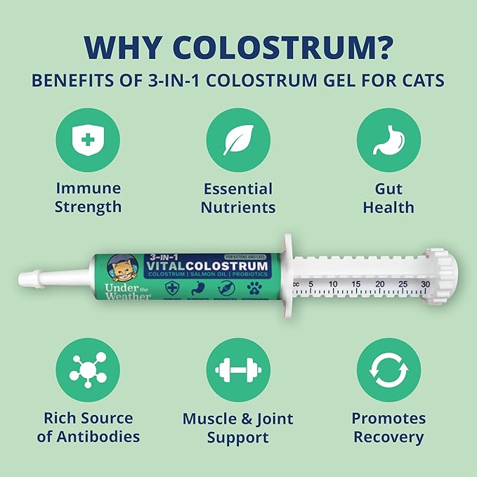 Under the Weather Colostrum Gel for Cats Immune Support Supplement | Salmon Oil & Probiotic Supplement | Natural Allergy Relief, Gut Health & Anti-Inflammatory Formula for Kittens & Senior Cats | 30cc