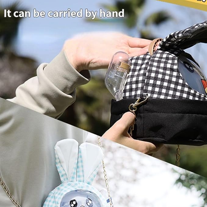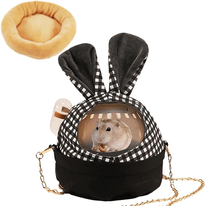 - Product Size:This hamster cage size is 6.69*6.39*6.69 in,Suitable for hamster,syrian hamster,sugar glider,baby squirrel ,baby fancy rat,baby guinea pig,baby chinchilla,etc.Equipped with a cute rabbit or cat cover, it makes the outing cage more fashionable and can make your little pet the focus of the excursion.