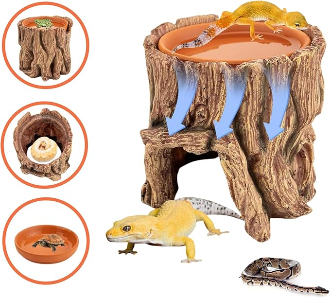 - 2-IN-1 HUMID HIDE LEOPARD GECKO: The reptile hide hideout is made of resin, aequipped with a detachable ceramic tray, with smooth edges, ceramic bowls can serve as both water and food dishes for reptiles, providing a secure area to keep them separated from other reptiles in their habitat