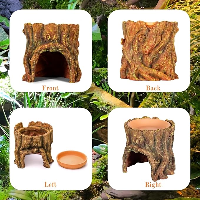- EASY TO CLEAN: The terracotta reptile water bowl basin on the top can be removed, allowing for easy cleaning with water to keep the cave clean and hygienic