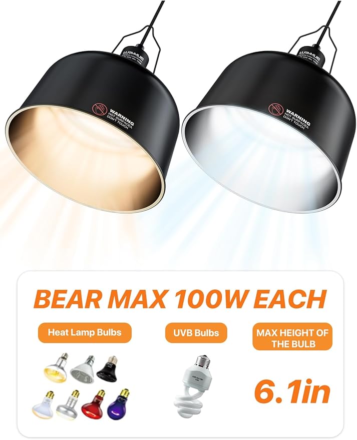 - One Fixture, Many Options – Fits UVA/UVB basking bulbs, ceramic heat emitters, daylight lamps and nightlight lamps—ideal for bearded dragons, turtles, lizards, snakes, geckos, and amphibians.