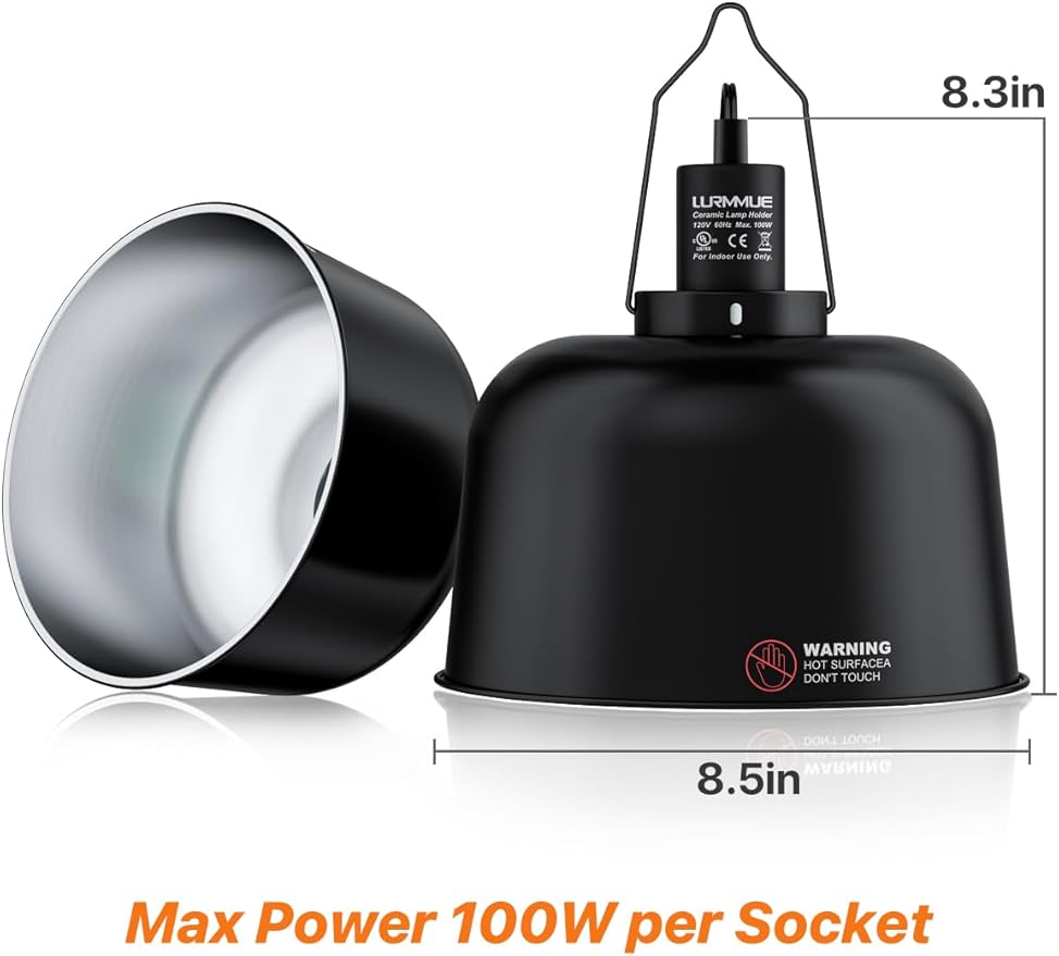 - Reliable & Certified Quality – 2-pack 8.5" deep dome clamp lamps with ETL/UL certification, E26 ceramic sockets (100W max), and 5.6ft cords for stable reptile lighting in terrariums.