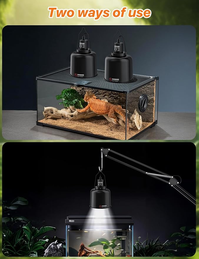 - One Fixture, Many Options – Fits UVA/UVB basking bulbs, ceramic heat emitters, daylight lamps and nightlight lamps—ideal for bearded dragons, turtles, lizards, snakes, geckos, and amphibians.